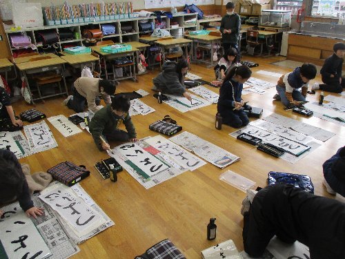 今年から毛筆の学習を始めた3年生。