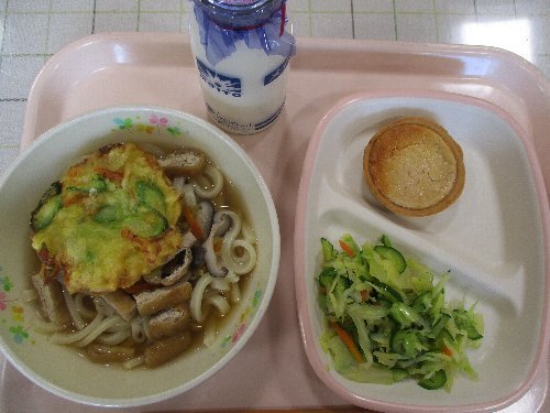 今日(きょう)は、色合(いろあ)いからも「春(はる)」を感(かん)じられる「かき揚(あ)げ」が給食(きゅうしょく)に登場(とうじょう)です!注目(ちゅうもく)してほしい食材(しょくざい)は、「アスパラガス」と「桜(さくら)エビ」です。まず、桜(さくら)エビ。体長(たいちょう)40mm前後(ぜんご)の小(ちい)さなえびですが、体(からだ)には160個(こ)ほどの発光器(はっこうき)があり、夜(よる)の海(うみ)でキラキラと輝(かがや)くことから「海(うみ)の宝石(ほうせき)」と呼(よ)ばれています。そして、「アスパラガス」。この野菜(やさい)から発見(はっけん)された「アスパラギン酸(さん)」という成分(せいぶん)の主(おも)な働(はたら)きは、「体(からだ)の疲(つか)れをとり、スタミナをつける」です。この成分(せいぶん)のおかげでアスパラガスは、1日(にち)に10cmほど伸(の)びるそうです。このパワーをもらって、元気(げんき)に過(す)ごしましょう!さらに、今日(きょう)はホワイトデー!いつも「おいしかったです」と調理員(ちょうりいん)さんたちにも声(こえ)をかけてくれる優(やさ)しい筑(ちく)北小(ほくしょう)のみなさんへ、給食室(きゅうしょくしつ)から「ありがとう」の気持(きも)ちを込(こ)めて「いちごのベイクドチーズタルト」を作(つく)りました。今回(こんかい)のいちごは、「筑(ちく)北村産(ほくむらさん)」です!