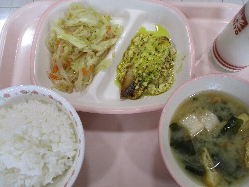 春(はる)を告(つ)げる魚(さかな)「鰆(さわら)」が給食(きゅうしょく)に登場(とうじょう)です。「さわら」の「さ」は狭(せま)い、「はら」は腹(はら)を意味(いみ)し、おなかが狭(せま)く、スマートな体型(たいけい)を表(あらわ)すのが名前(なまえ)の由来(ゆらい)だそうです。給食室前(きゅうしょくしつまえ)に魚(さかな)のポスターが張(は)ってあるので「鰆(さわら)」を探(さが)してみましょう!今日(きょう)は、その鰆(さわら)を使(つか)って「菜種(なたね)焼(や)き」にしました。「菜種(なたね)焼(や)き」とは、魚(さかな)の上(うえ)に卵(たまご)と菜(な)の花(はな)などの青菜(あおな)をのせた春(はる)の焼(や)き物(もの)料理(りょうり)です。卵(たまご)の黄色(きいろ)と青菜(あおな)の緑(みどり)が花(はな)の咲(さ)いた菜(な)の花(はな)を表(あらわ)しています。今日(きょう)の緑(みどり)の部分(ぶぶん)は、ビタミンをたっぷり含(ふく)む生(なま)の「パセリ」を使(つか)いました。見(み)た目(め)も楽(たの)しんで食(た)べてください!