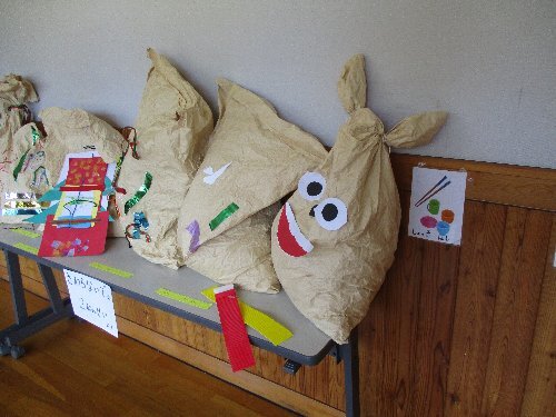 大きなクラフト紙とビリビリ新聞紙でオリジナルぬいぐるみを作りました。