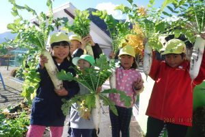 園の畑で大根の収穫をしました。